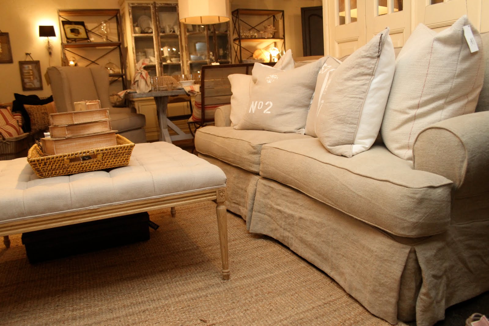 This sofa looks a lot like mine, it's Ekeskog from Ikea, the model is no loonger awailable over here. Mine is in brown cord, but I sertainly consider a linen cover now:-) It's wonderfull to sitt in, and sleep in allso;-).