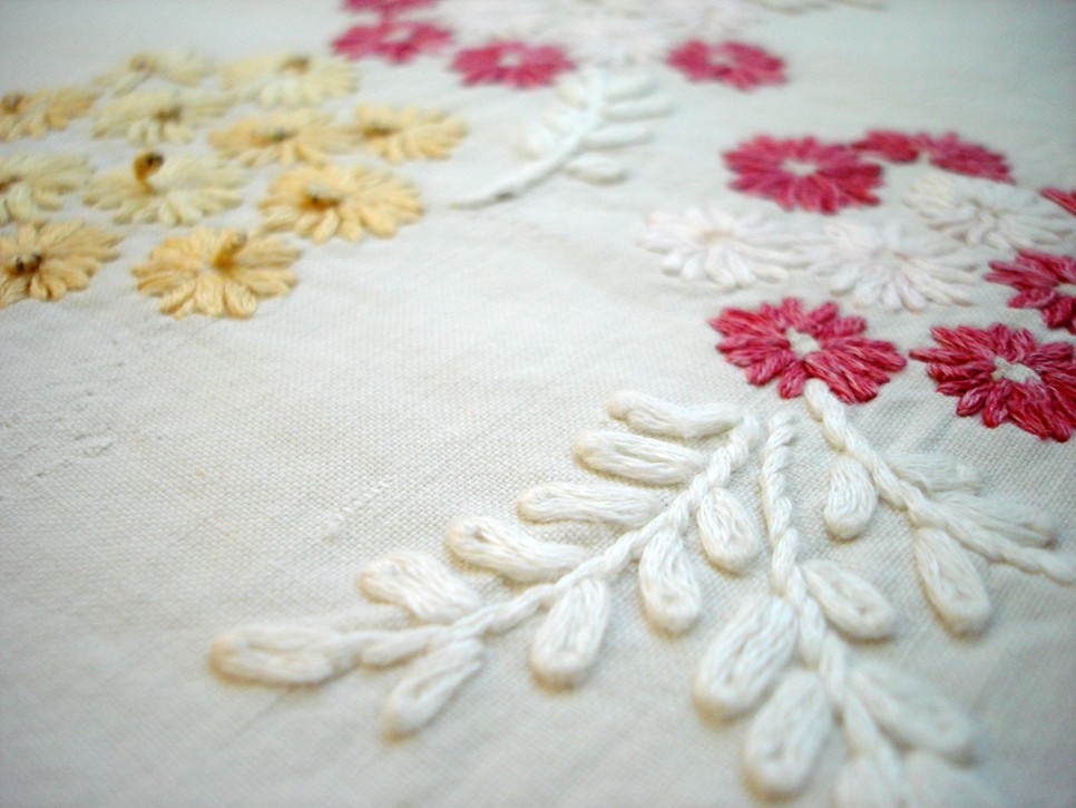 Stitches on old linens, stained or not ~ they are beautiful to me.