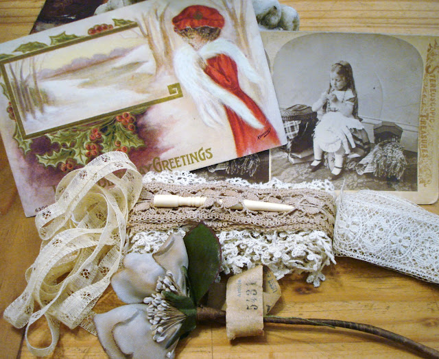 Gorgeous old lace, images and a sweet antique stereoview of a little girl and her doll ~