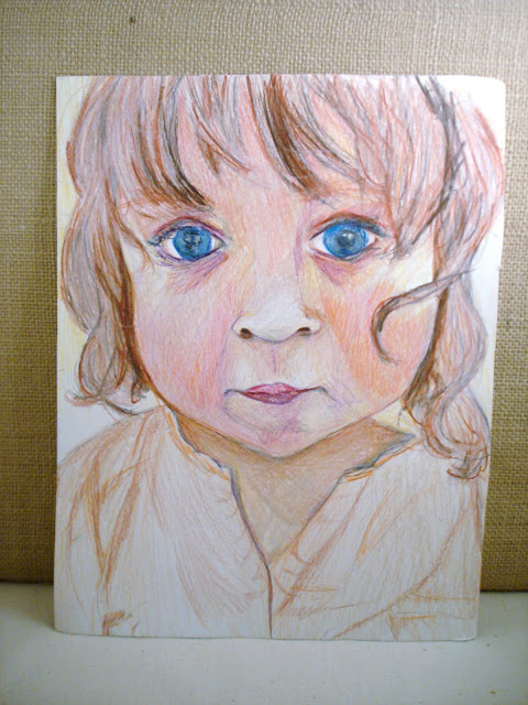 papers, ribbons...and the most beautiful portrait of Clara created by Lisa's niece!!!!