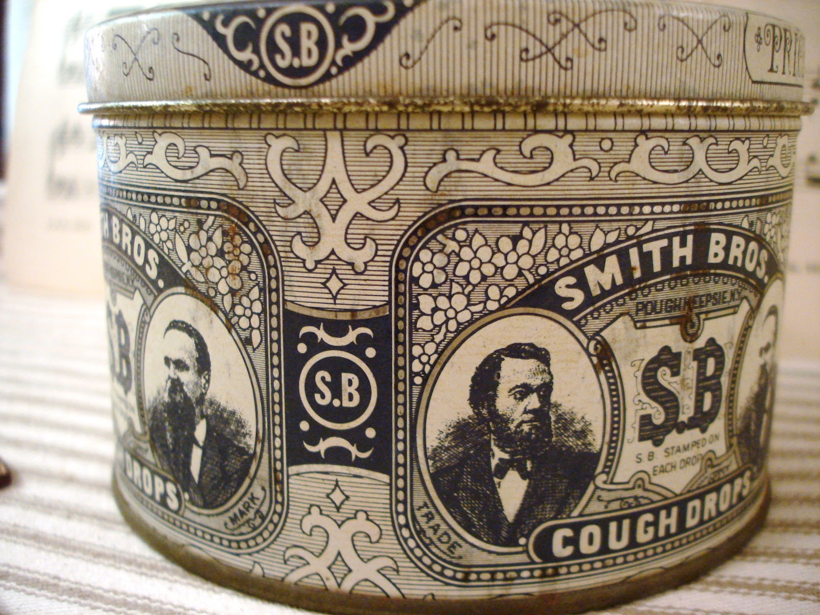 Such great finds. Love them all. I think that old Smith Cough Drops tin was MINE! lol I had one and it "disappeared" during one of my hubby's take-it-to-the-thrift-shop clean ups!