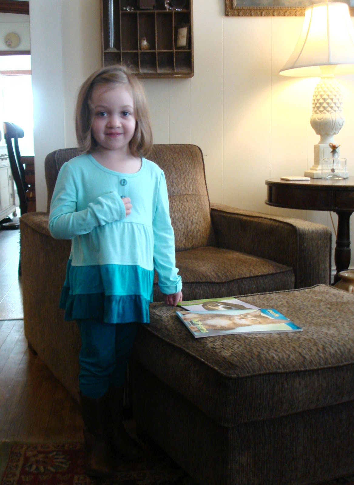 How refreshing to see a natural little girl who is just that "natural". A lovely complexion, a beautiful face, and no artifice. Almost every day I drive by Clara Street (here in town), and think of you and your granddaughter. Love your posts!