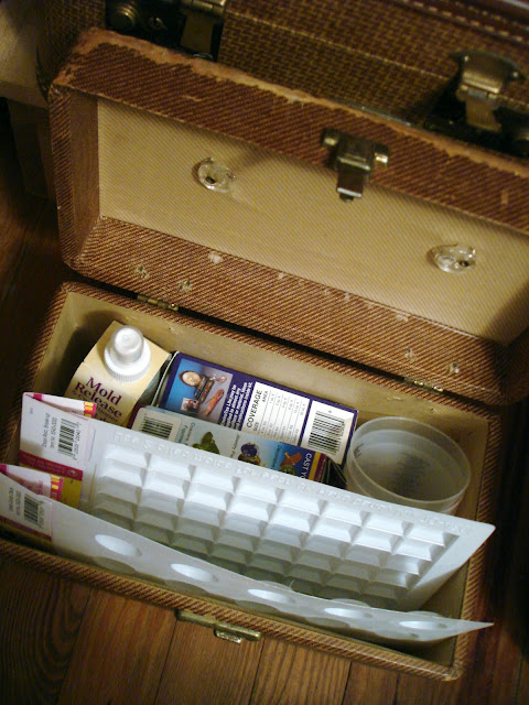 I love to store supplies in vintage train cases and suitcases...