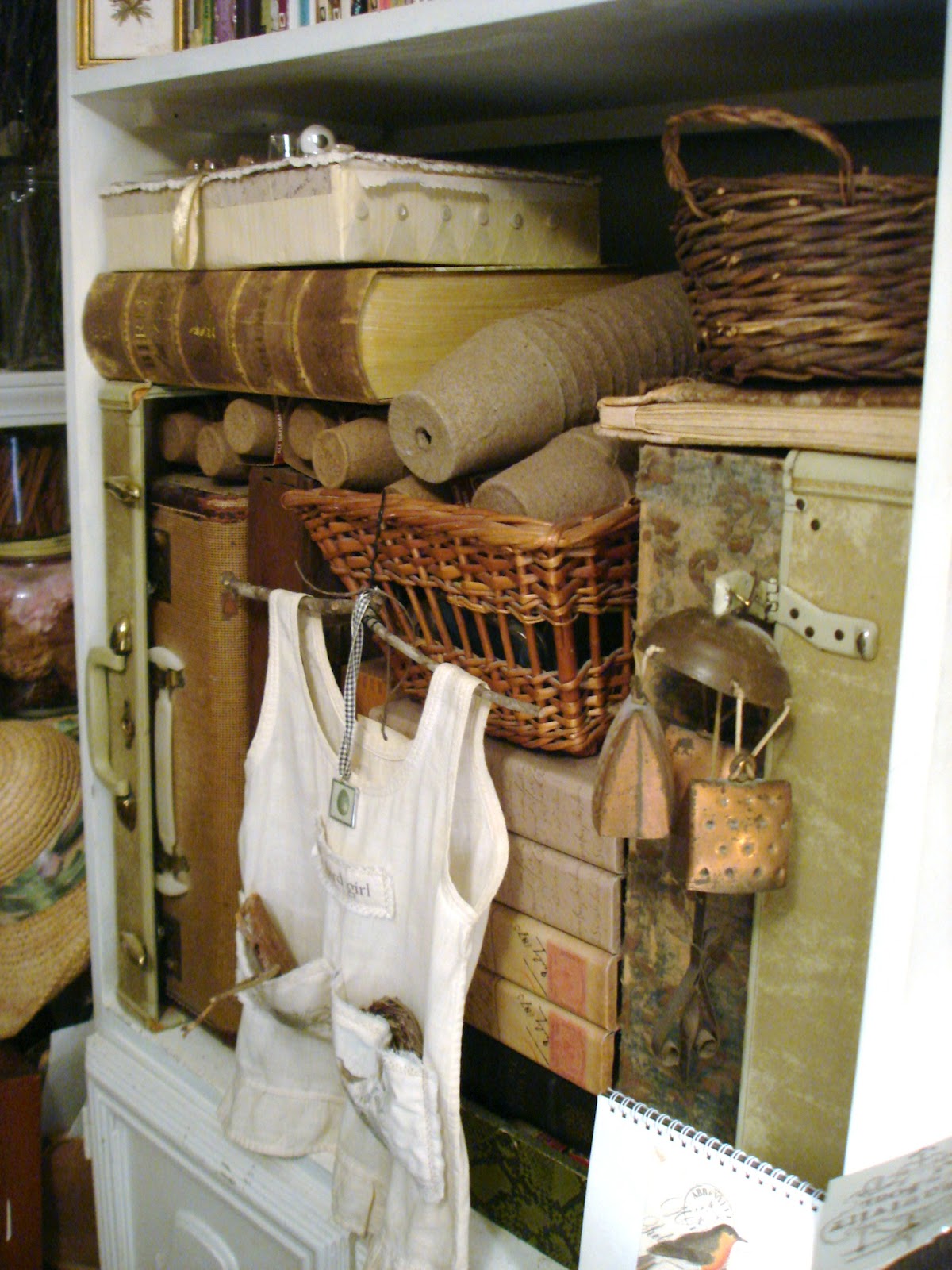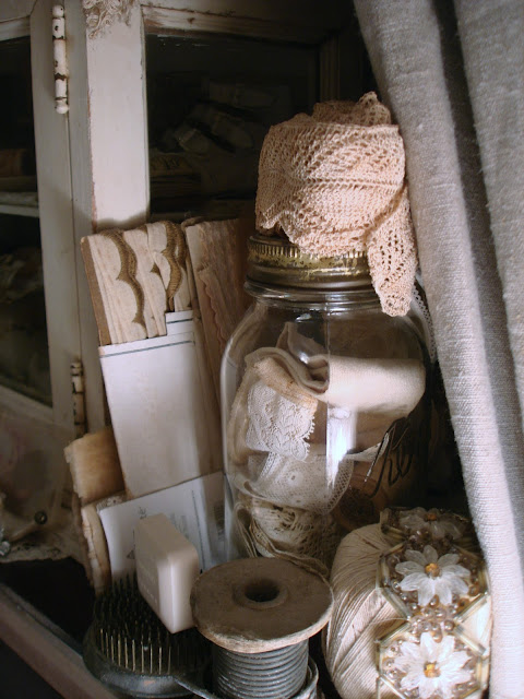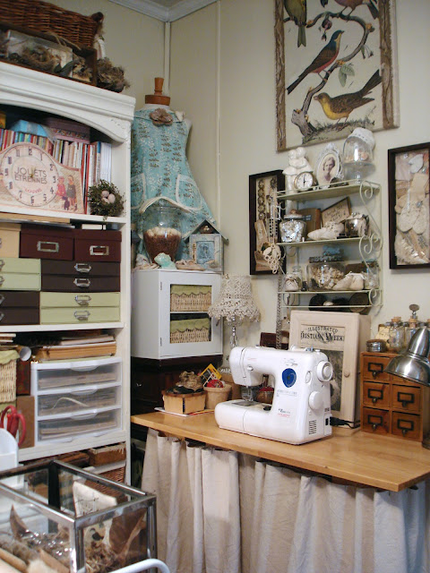I never grow tired of looking at your studio. I feel like I've been there before, so many things are familiar to me either from seeing them here or talking about them. I swear if I walked in right now I'd know where you kept the feathers and twine! But It''s the suitcase of lace I' d go after:)