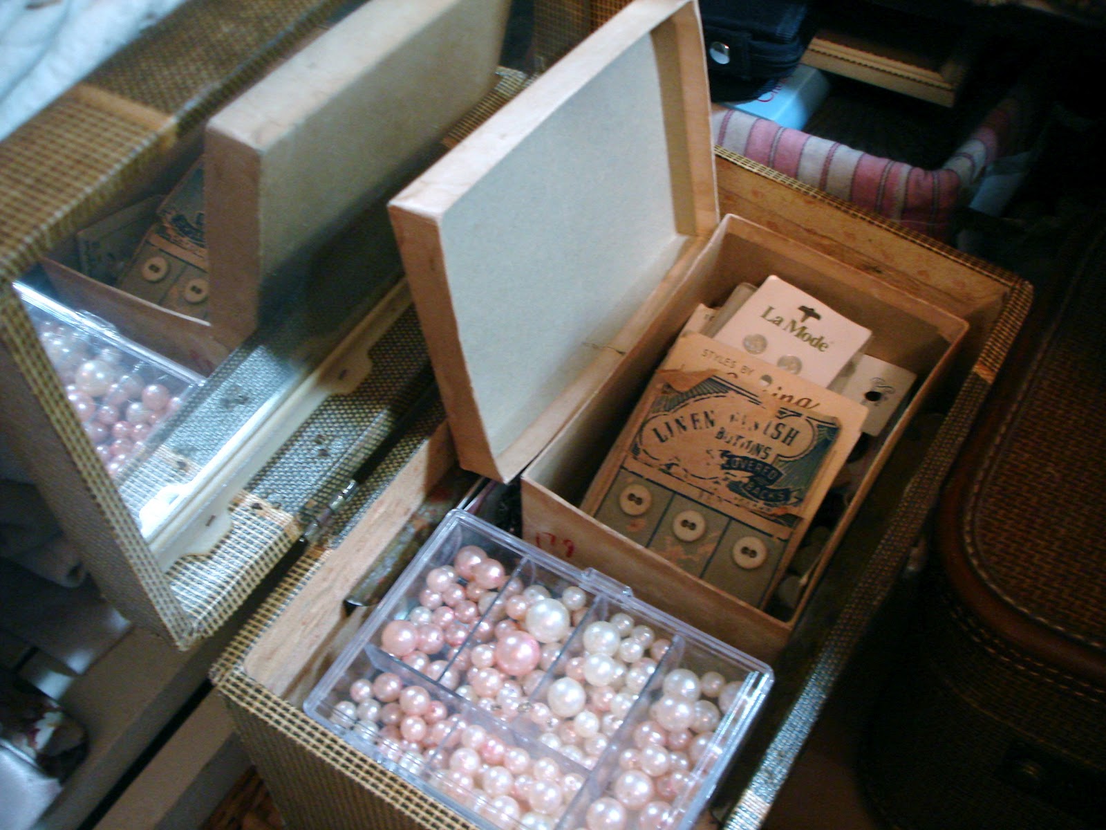 Lovely Post of your studio! Love the suitcase full of lace, trims and old pictures