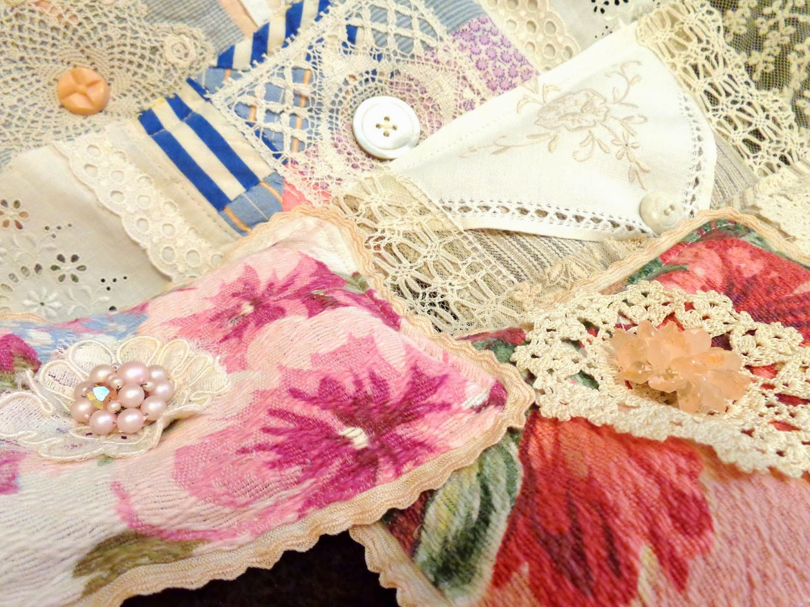 I've used quilt scraps, doilies, vintage laces, embroidered linens and