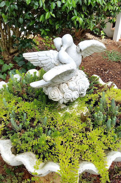 But first, look at how wonderful our sedum succulents are doing in the birdbath!!!