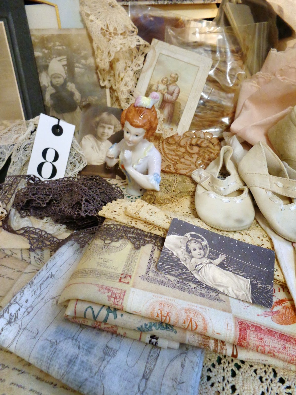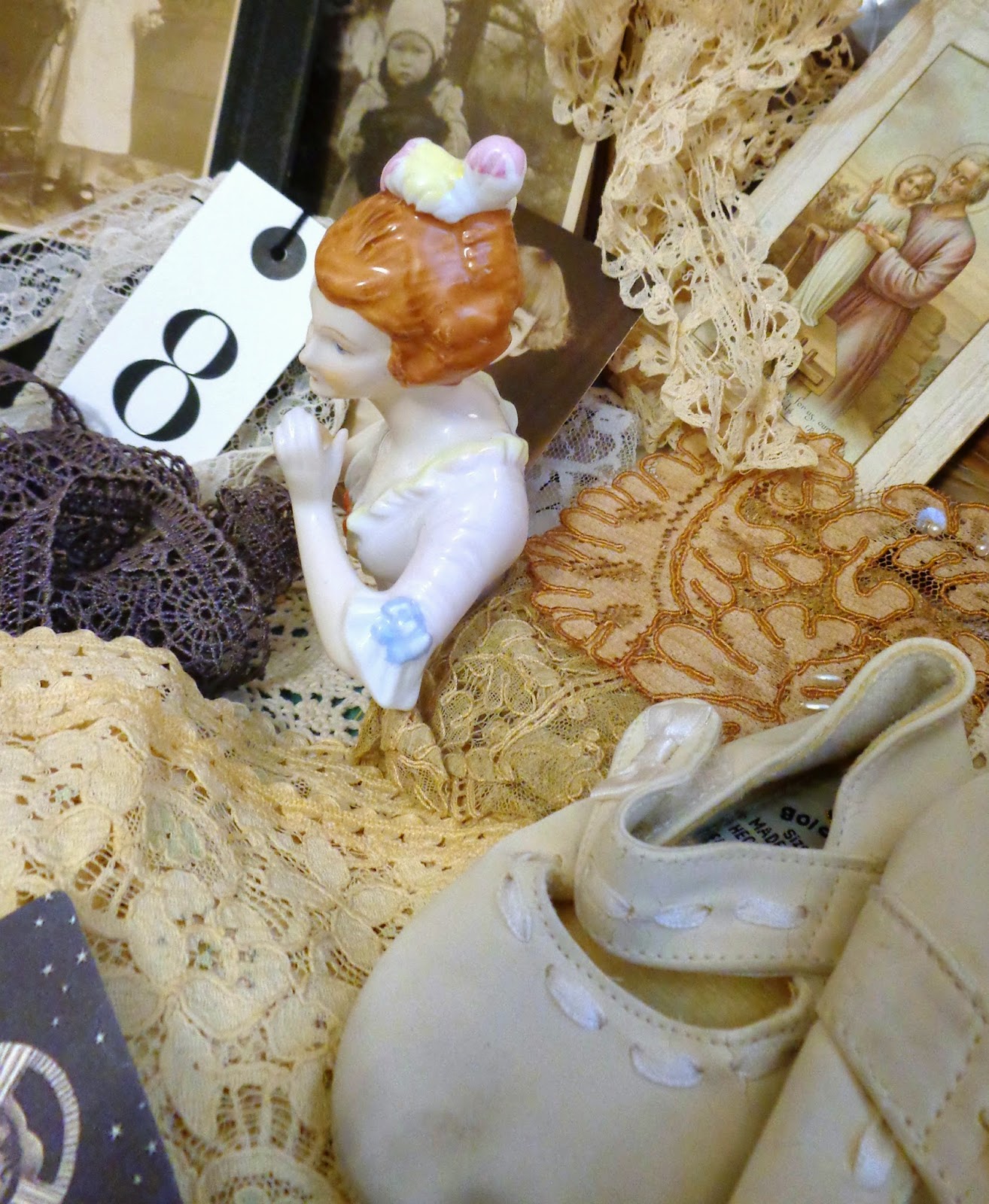 Gorgeous antique lace and a porcelain half doll!