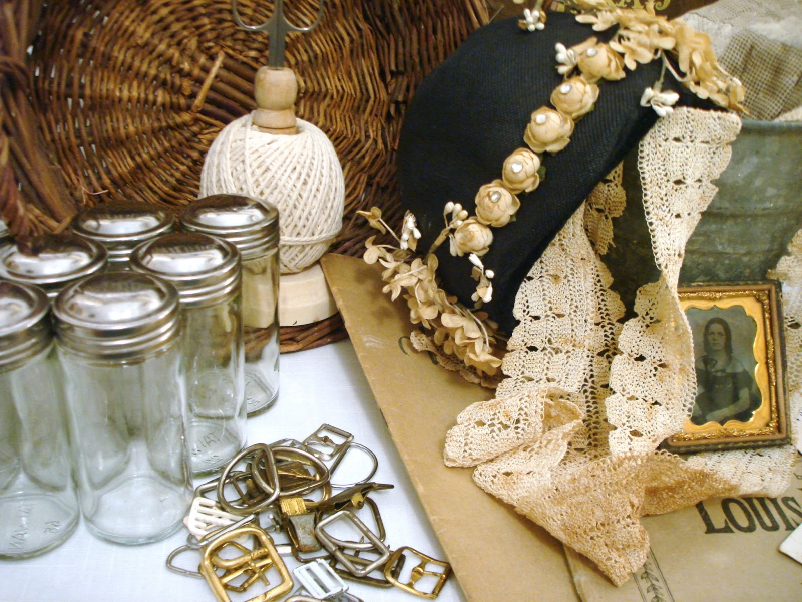gorgeous old lace, vintage buttons and a random watch face of course!