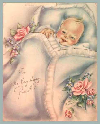 Several years ago I purchased a lot of antique baby cards from a seller on ebay with the MOST beautiful graphics ever! I'll scan a few designs in, print them out and paste onto the cards ~ Maybe even frame one just for Emily. When I scan them in, I'll be sure to share them too!