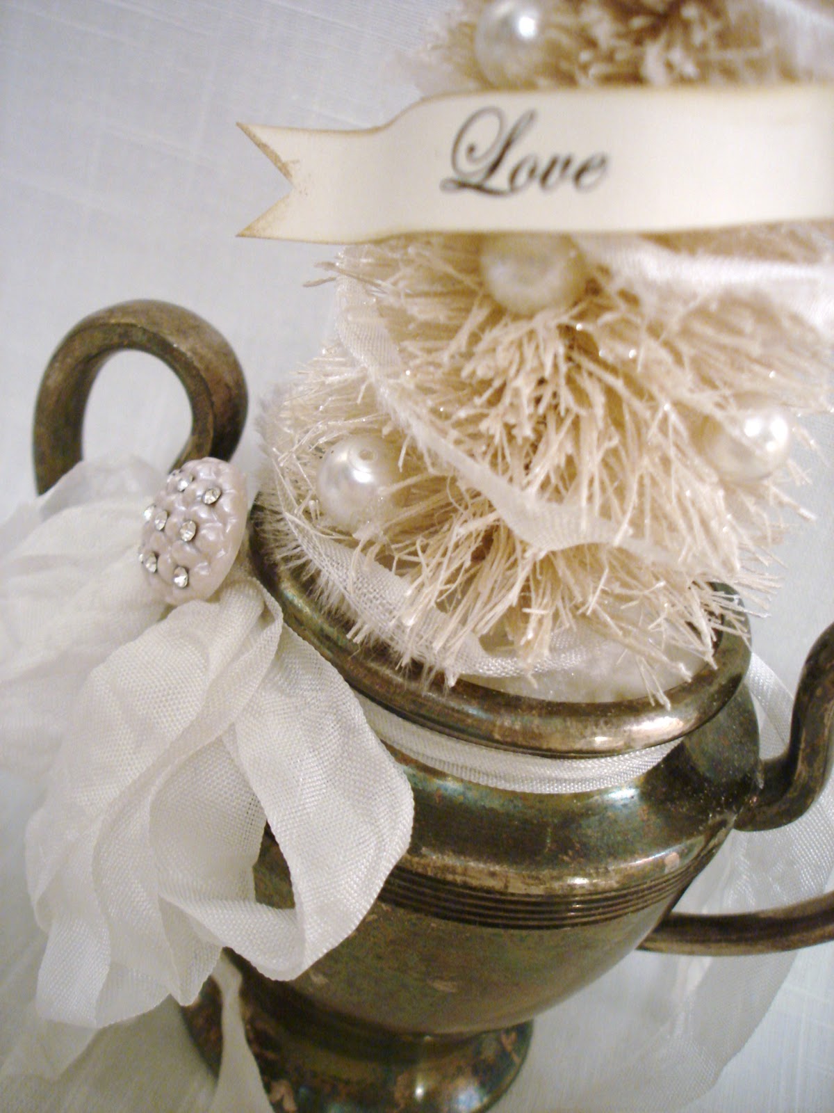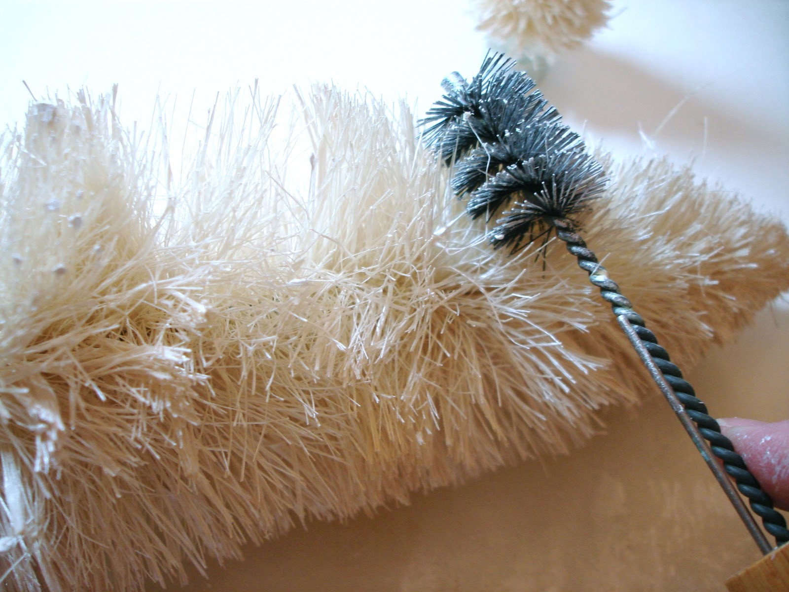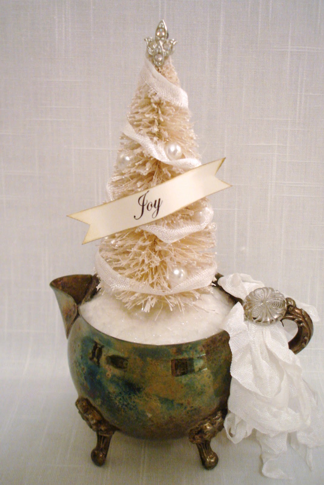 a tiny bottle brush tree and other goodies to make a pretty Christmas ornament.