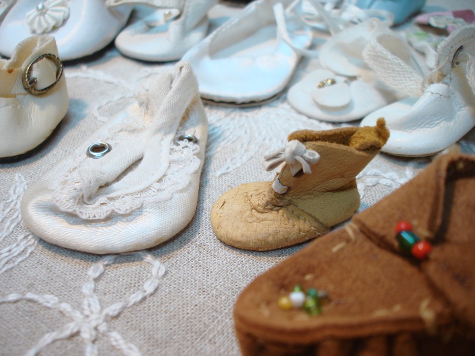Teeny tiny doll shoes ~ not pairs, just single shoes who've lost their mates.