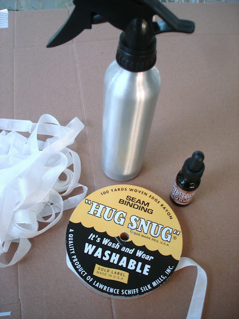 I started with the shade "egg shell" seam binding and squirted it thoroughly.
