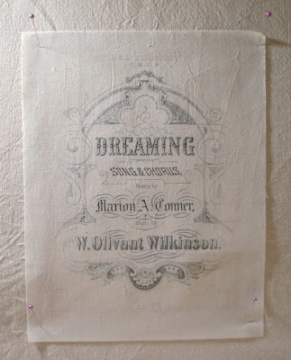 A spare copy of the sheet music cover printed on thin muslin, hmmmm.....I've got to think of something neat to do with this ~ I love looking at it!! I've got it pinned to the back of the advent calendar so I can stare at it ~