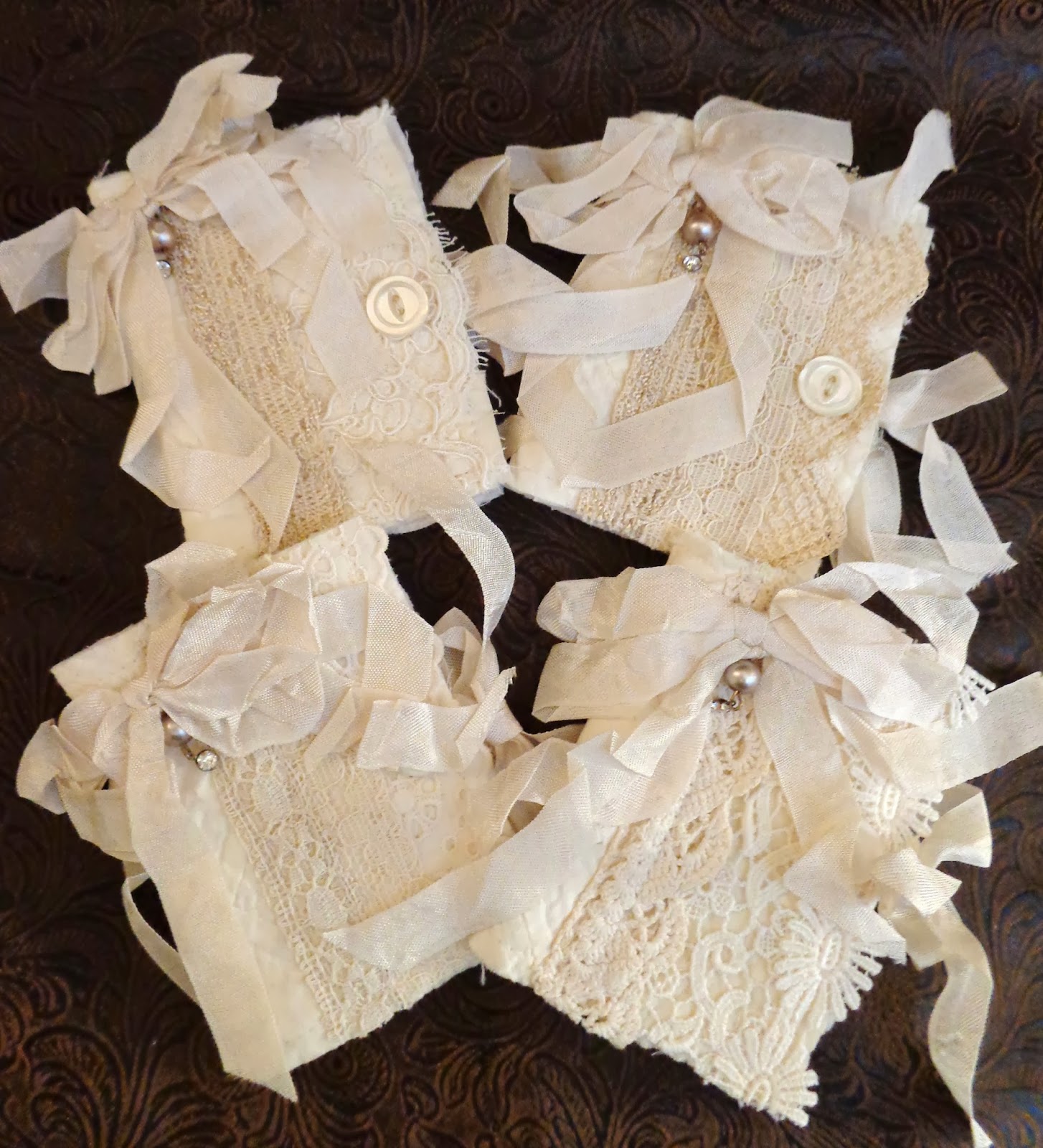 They are quite simple but embellished with snippets of old lace